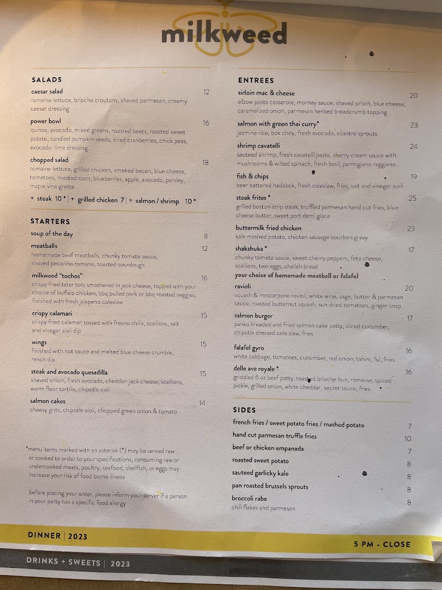 Welcome to Milkweed, a delightful American restaurant nestled in the charming neighborhood of Mission Hill, Boston. Celebrated for its vibrant atmosphere and creative menu, Milkweed is an ideal spot for anyone looking to savor a culinary experience that balances comfort food with innovative twists.