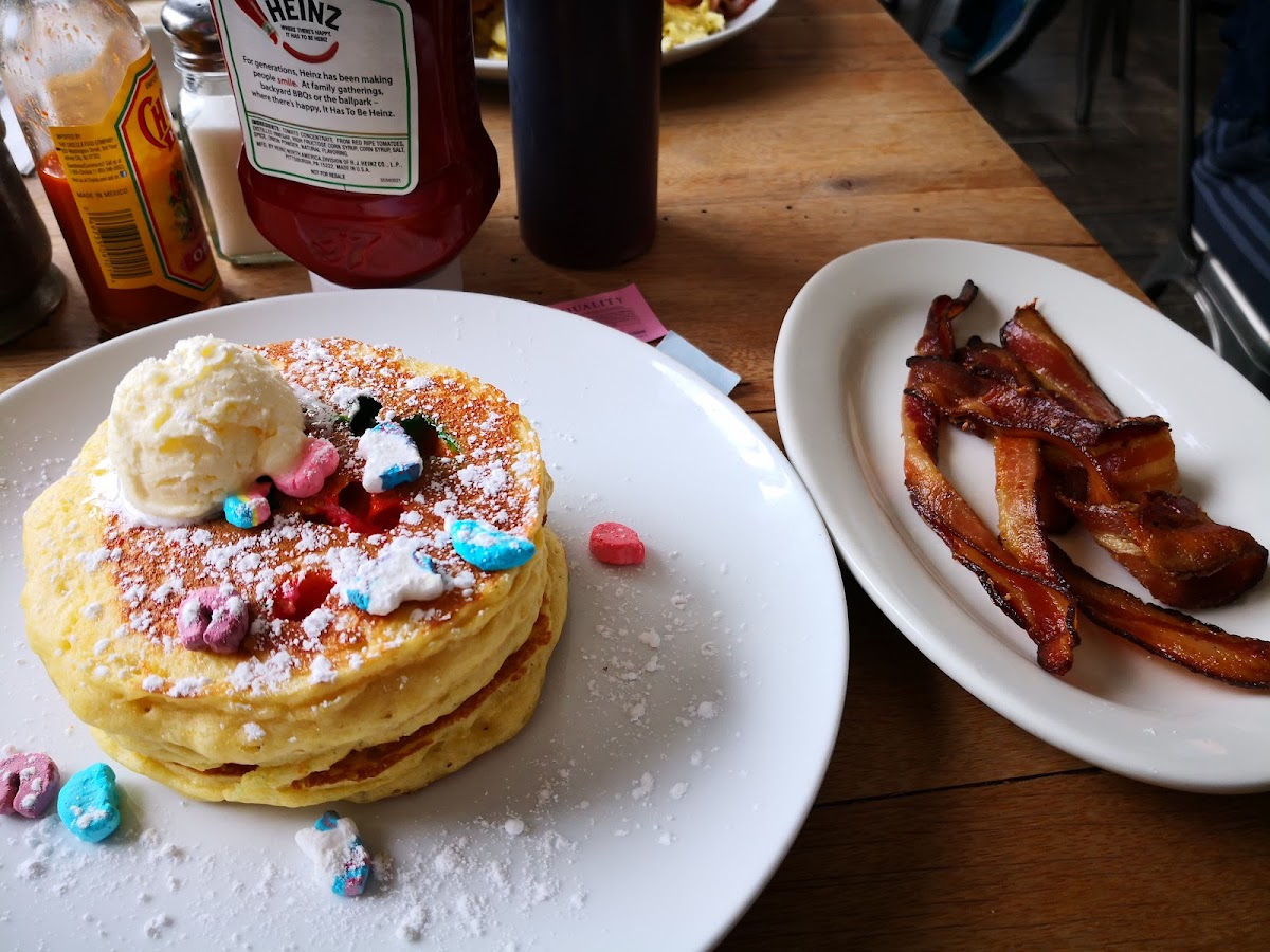 The drink selection is equally impressive, with offerings like their Lavender Matcha and the Lucky Charms Coffee providing a whimsical touch to your meal, while classic options like tea and nitro iced coffee are also available for those looking for a quick caffeine fix.